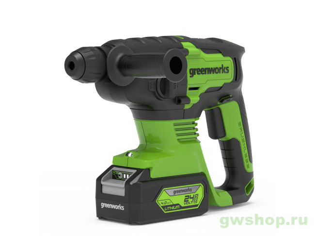 Перфоратор аккумуляторный бесщеточный GREENWORKS GD24SDS2 2 ДЖ, 24V, c 1хАКБ 4 А.ч и ЗУ в сумке Greenworks 3803007UB