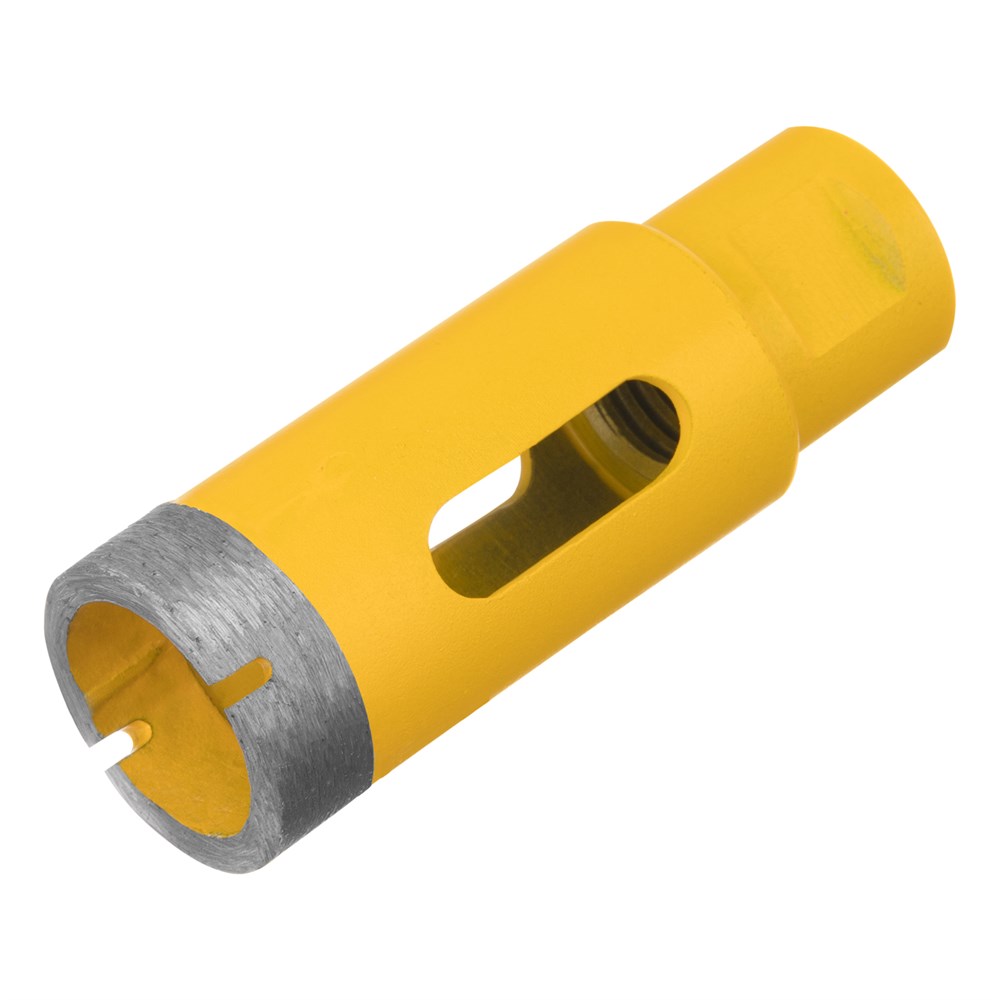 Алмазное сверло Denzel 72682 диаметром 27 мм с резьбой М14 — это идеальный инструмент для «мокрого» сверления по керамограниту, мрамору, стеклу и керамической плитке. С его помощью вы сможете получать ровные отверстия без сколов, что делает его незаменимым помощником в ремонтных и отделочных работах. Сверло устанавливается на вал углошлифовальной машины, что увеличивает скорость сверления в несколько раз по сравнению с традиционной дрелью или шуруповертом.