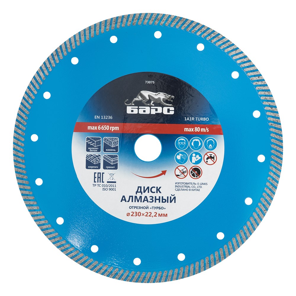 Диск алмазный Турбо 230 х 22.2 мм от бренда Барс станет отличным выбором для тех, кто ценит качество и надежность. Благодаря своим уникальным характеристикам, он обеспечивает эффективность и удобство при выполнении различных работ.