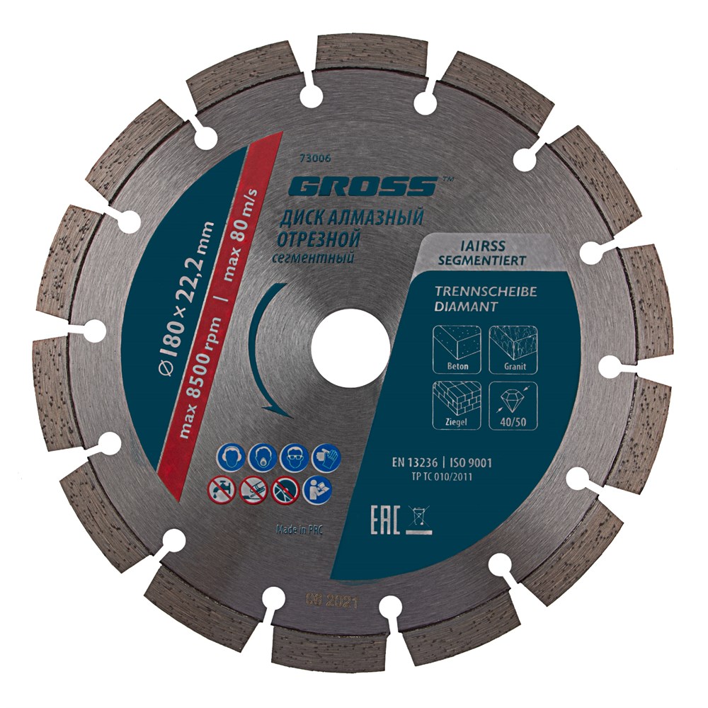 Диск алмазный, 180 х 22.2 мм, лазерная приварка сегментов, сухая резка Gross 73006