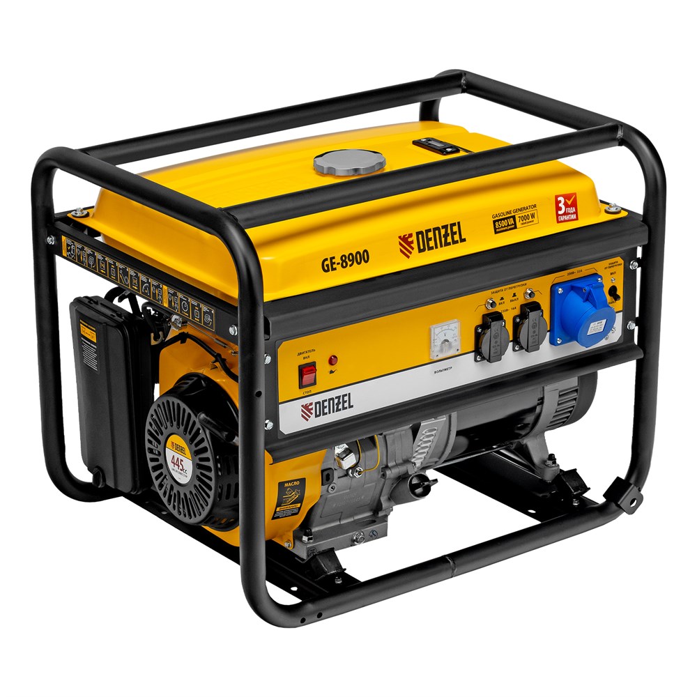 Генератор бензиновый GE 8900, 8.5 кВт, 220 В/50 Гц, 25 л, ручной старт Denzel