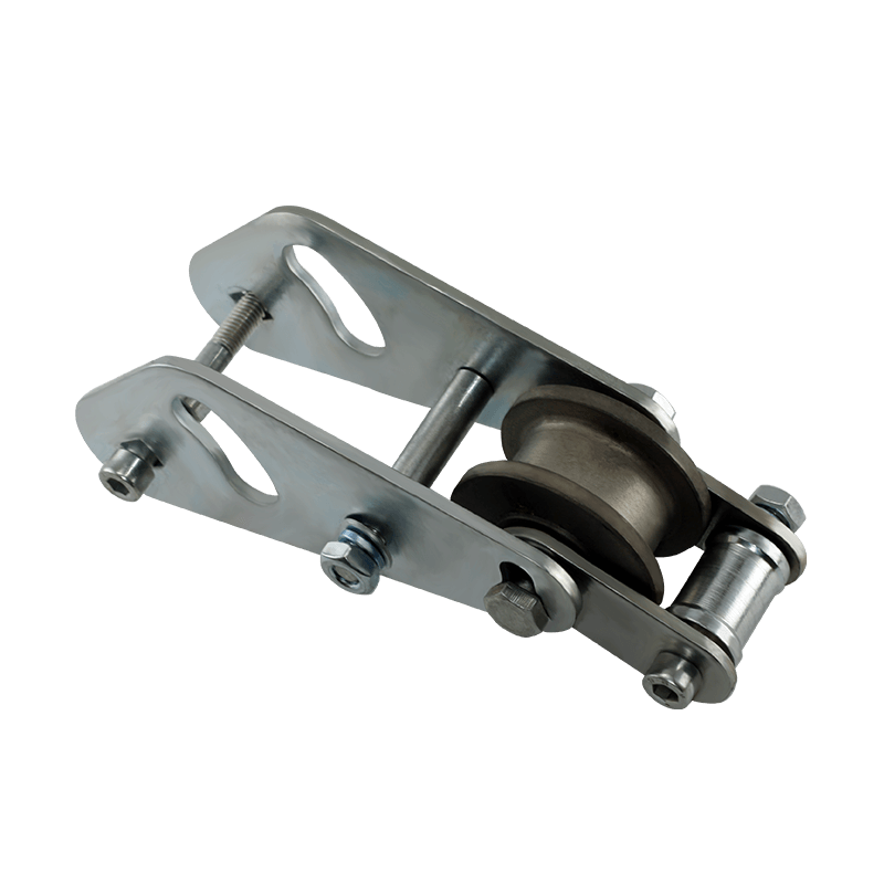 - ролики соединены скобой — жёсткая металлическая скоба обеспечивает целостность конструкции и правильную геометрию расположения элементов;