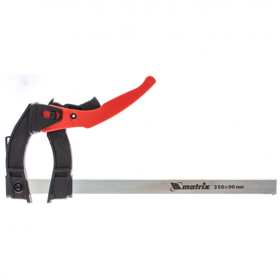 Струбцина реечная быстрозажимная, пластиковый корпус рычажно-храповой механизм, 250 х 90 х 340 мм, штанга 5 х 20 мм Matrix 20737