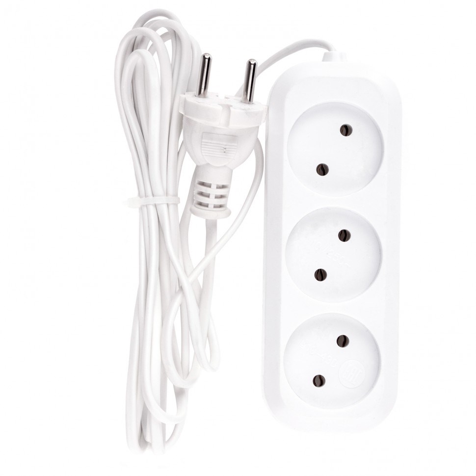 - Корпус удлинителя изготовлен из белого пластика, устойчивого к механическому воздействию и износу.