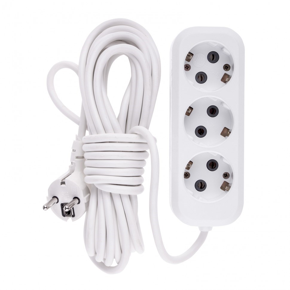 - Корпус удлинителя изготовлен из белого пластика, устойчивого к механическому воздействию и износу.