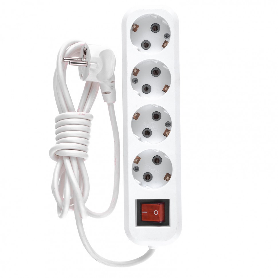 Удлинитель бытовой, с заземлением и выключателем, 2 м, 4 розетки, 10 A, серия УХз10 Denzel 95975
