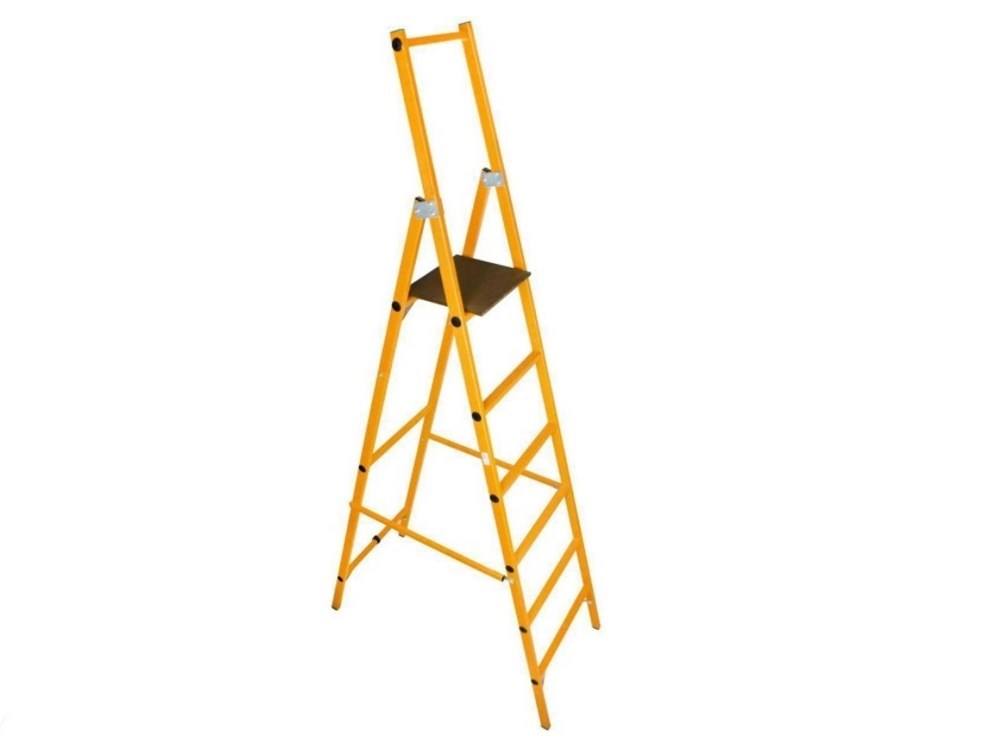 Диэлектрическая стремянка ЗЭП 4 ступени ССС-2,2Ш-55 - наиболее традиционный и самый распространенный вид стремянок. Проста и удобна в эксплуатации. Имеет увеличенную ширину ступени до 95 мм. Рабочая площадка имеет фиксатор из нержавеющей стали. Может использоваться как внутри помещений, так и на открытом воздухе, в суровых климатических условиях. Для изготовления тетивы используется диэлектрический стекловолоконный профиль прямоугольного сечения. На верхних концах тетив установлены пластиковые (ПВД/ПНД) заглушки, на нижних – противоскользящие эластополимерные опоры. Нижняя ступень имеет дополнительное усиление в виде металлических распорок, что повышает прочность конструкции. Ступени изготовлены из профиля 36х26 мм с противоскользящими ребрами.