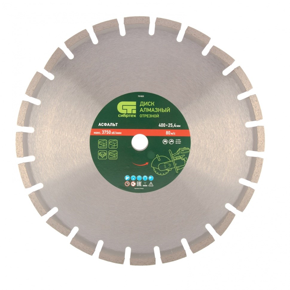 Диск алмазный 400 х 25.4 мм, "Асфальт", сухой/мокрый рез Сибртех 731023