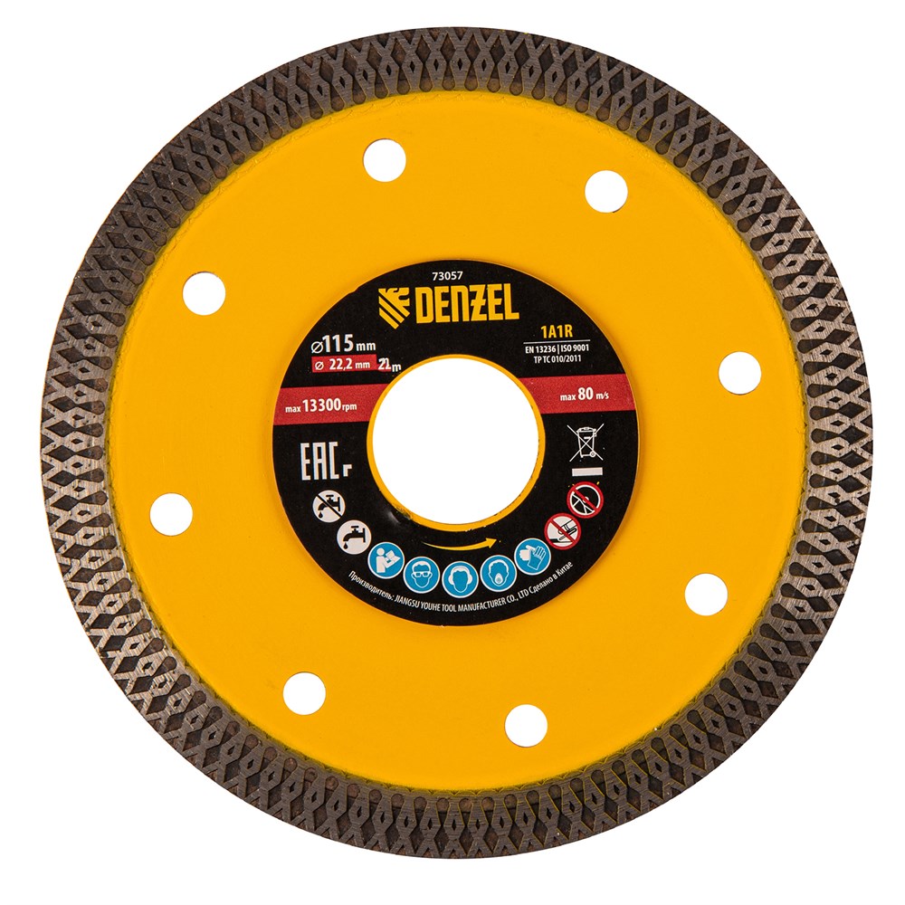 Диск алмазный отрезной 115 х 22,2мм, сплошной, супертонкий, горячий пресс, сухой/мокрый рез Denzel 73057