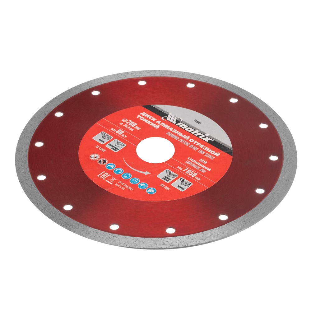 Диск алмазный сплошной, тонкий, 200 х 25.4 мм, мокрое резание Matrix