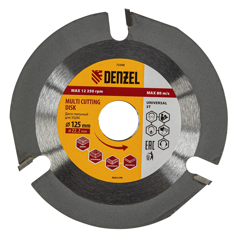 Пильный диск от бренда Denzel – это надежный инструмент для углошлифовальных машин, который идеально подходит как для профессиональных маляров, так и для домашних мастеров. Модель 73398 с диаметром в 125 мм и посадочным диаметром 22,2 мм предназначена для работы с различными материалами, такими как древесина, тонкий пластик, гипсокартон и газосиликат.