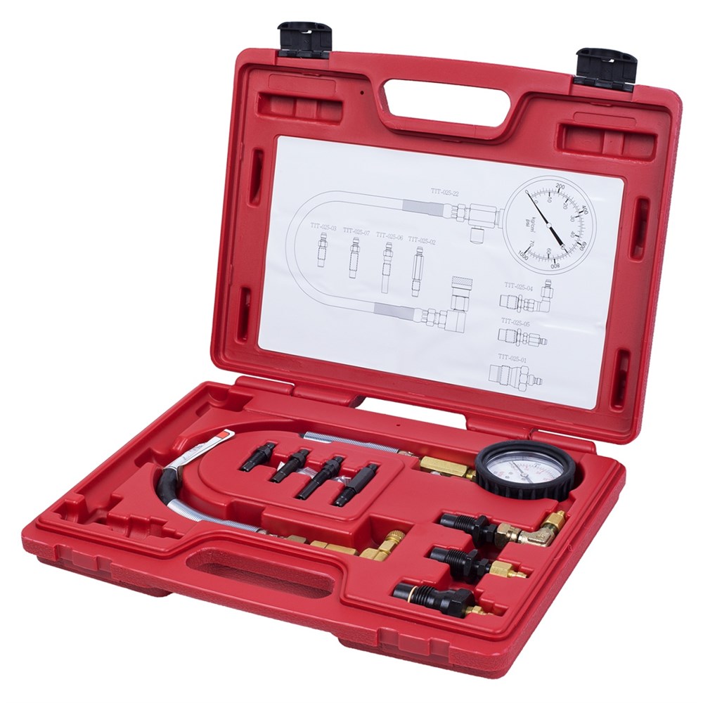 Назначение Предназначен для измерения компрессии дизельных двигателей. Применение: Audi, GM, Isuzu, Lincoln Mark Vll, Lincoln Continental, Ford / Navistar, Mercedes Benz, Peugeot, Toyota, VW, Volvo и др. Состав • Манометр: диапазон измеряемой компрессии 0-70 бар (1000 psi) • Клапан фиксации измеряемой компрессии с кнопкой сброса • Гибкий армированный шланг 420 мм с поворотным шарниром и быстросъемным адаптером • Адаптеры резьбовые для различных марок автомобилей, 7 шт • Кейс