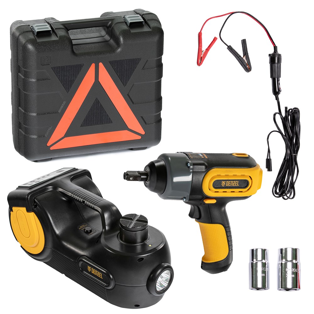 Домкрат электрогидравлический «3 в 1» (1,5 т), 12В, с гайковертом электрическим, в наборе Denzel 51190