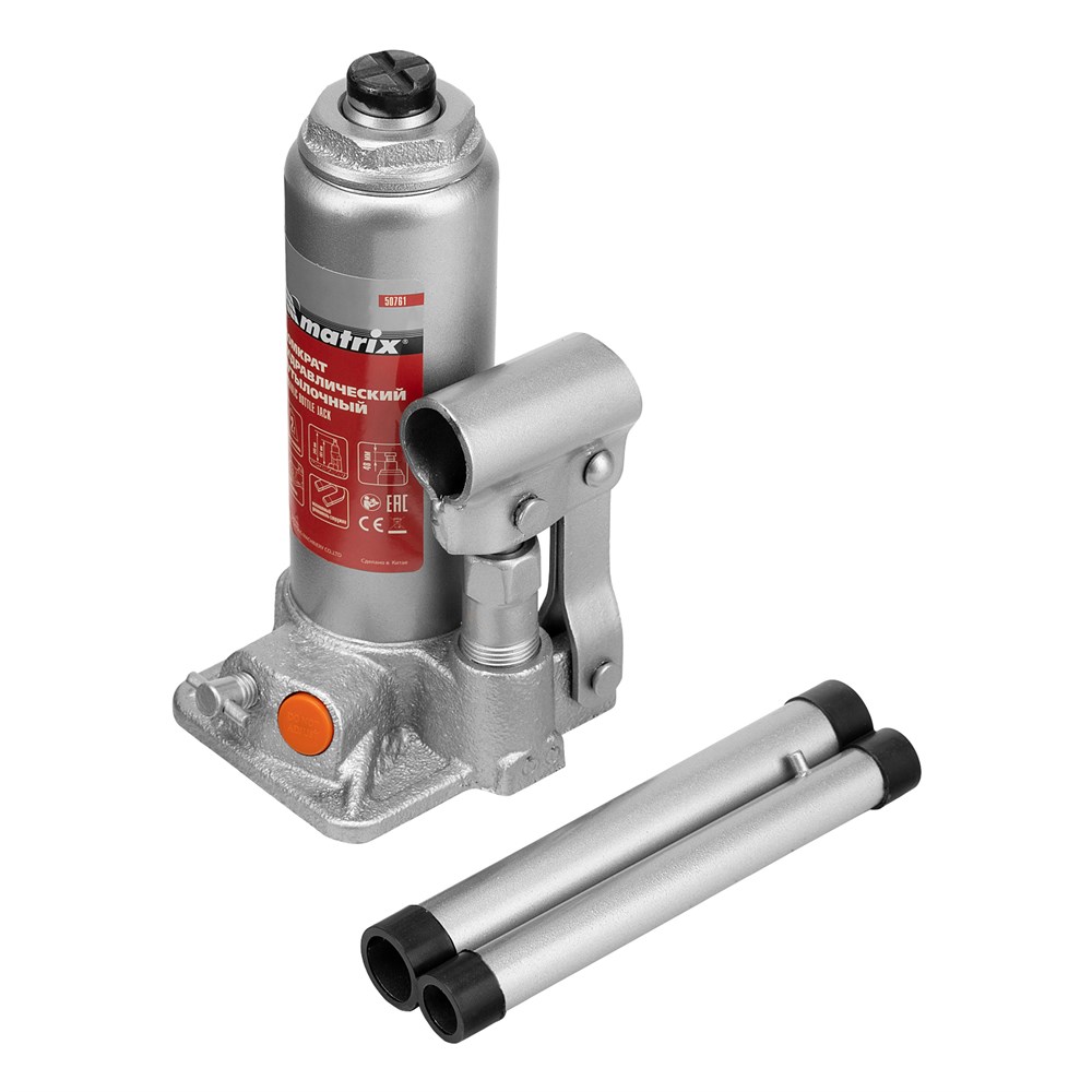 Гидравлический бутылочный домкрат Matrix 50761 – это надежный инструмент, предназначенный для быстрой и безопасной работы с грузами массой до 2 тонн. С его помощью вы можете поднимать объекты на высоту от 181 до 345 мм, что делает его незаменимым помощником как для автолюбителей, так и для профессионалов на станциях технического обслуживания.