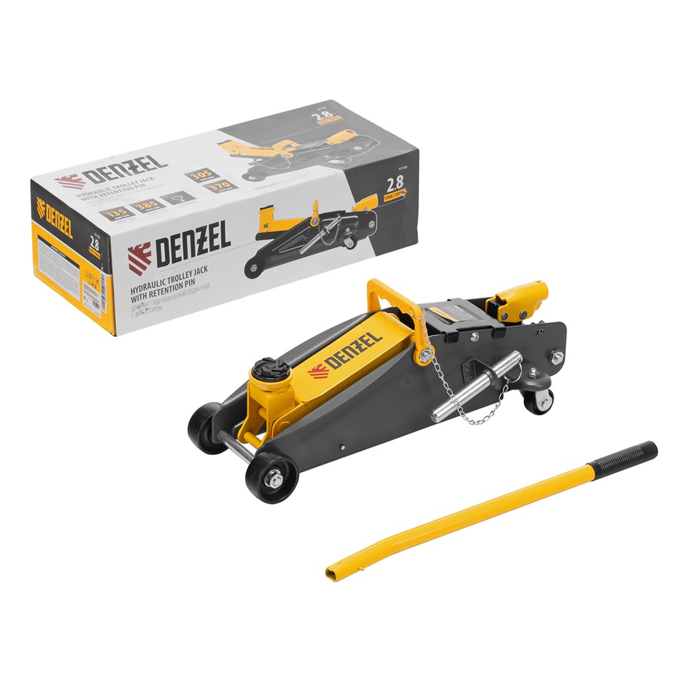 Домкрат гидравлический подкатной с фиксатором, 2,8 т, 135-385 мм Denzel 51155