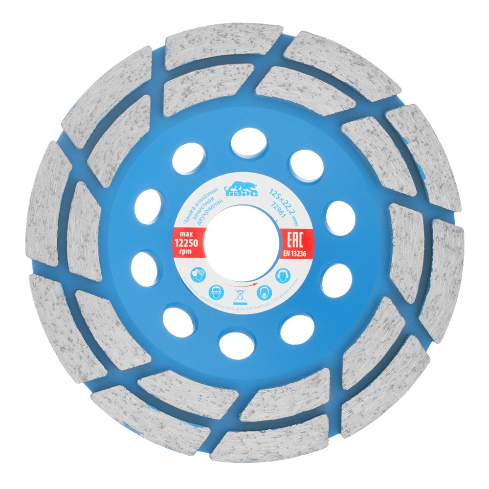 Чашка алмазная зачистная, 125 мм, двухрядная Барс 72961