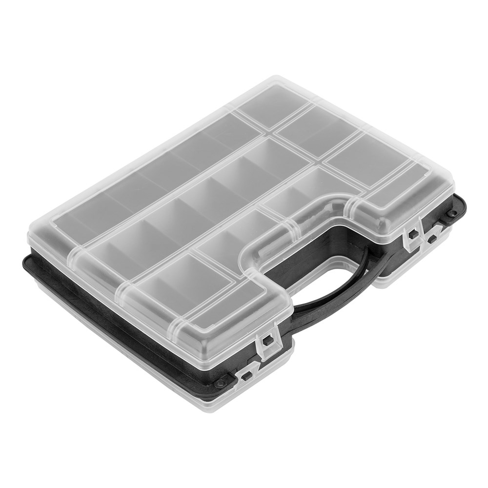 Органайзер двухсторонний Сибртех 90738 – это надежное и удобное решение для хранения мелких вещей. Его размеры 295 х 220 х 76 мм позволяют разместить органайзер в любых укромных местах, таких как под кроватью или на стеллажах. Это делает его идеальным выбором как для домашнего использования, так и для работы вне дома.