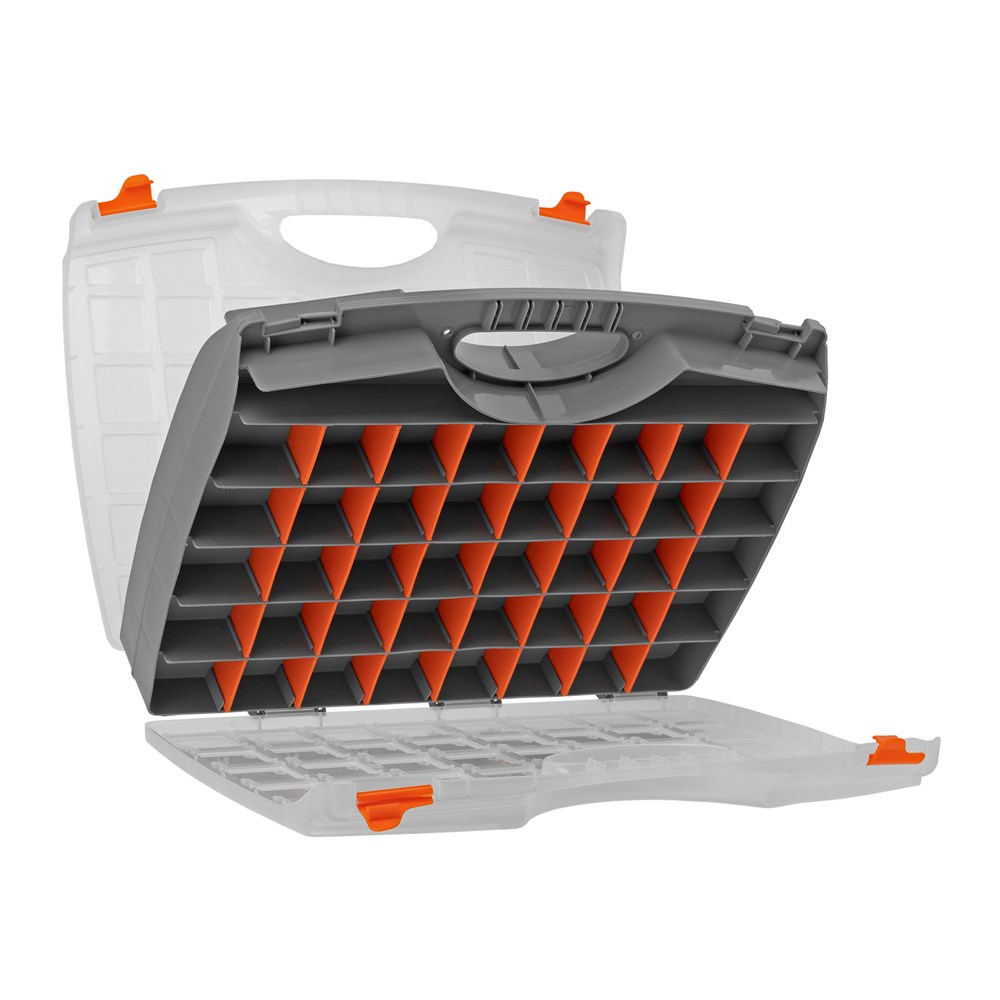 - Удобство транспортировки: Защелки и ручка обеспечивают комфорт при переноске органайзера, что особенно удобно в условиях мастерской.