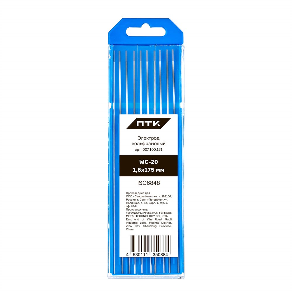 Каждый электрод упакован в удобный пластиковый пенал, что обеспечивает его защиту и легкость в транспортировке. Выберите вольфрамовый электрод WС-20 для надежной и качественной сварки.