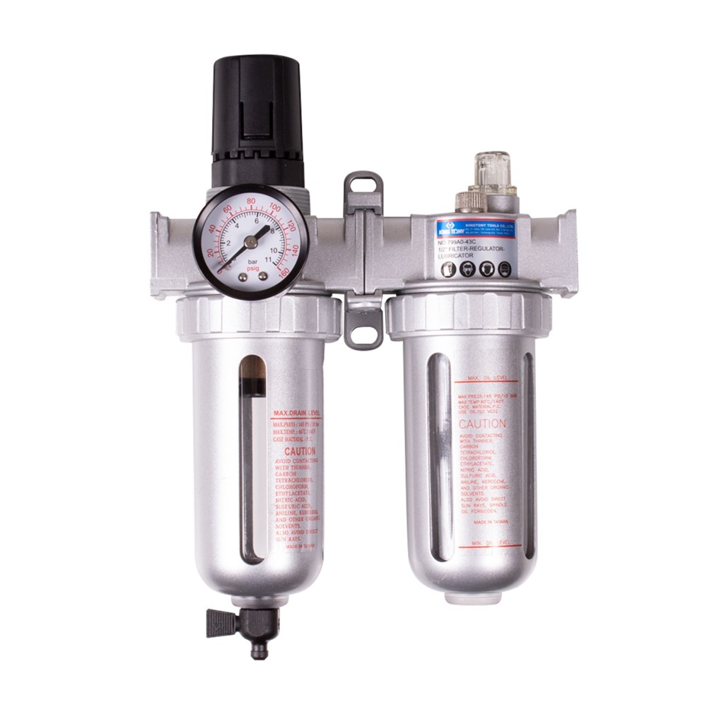 Фильтр влагоотделитель с редуктором и лубрикатор 1/4", с манометром KING TONY 799A0-23C TONY
