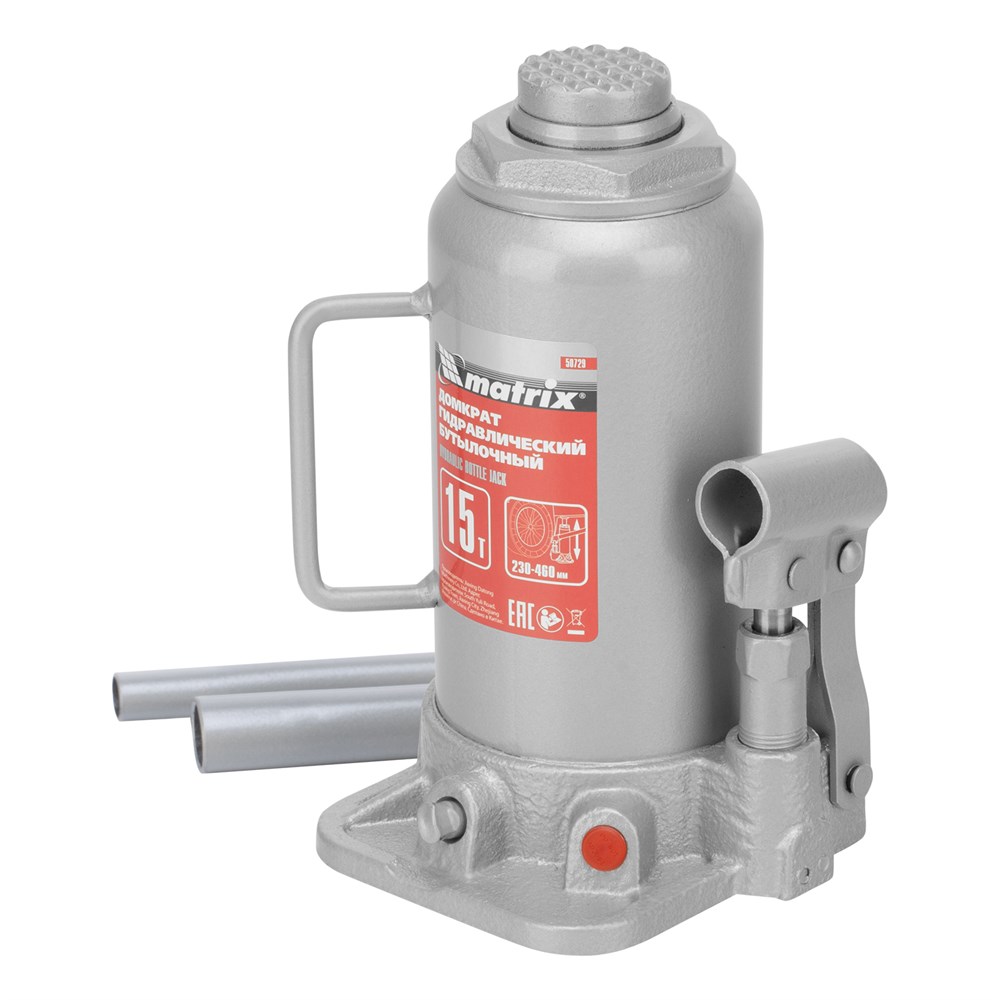 Домкрат гидравлический бутылочный, 15 т, высота подъема 230-460 мм Matrix 50729