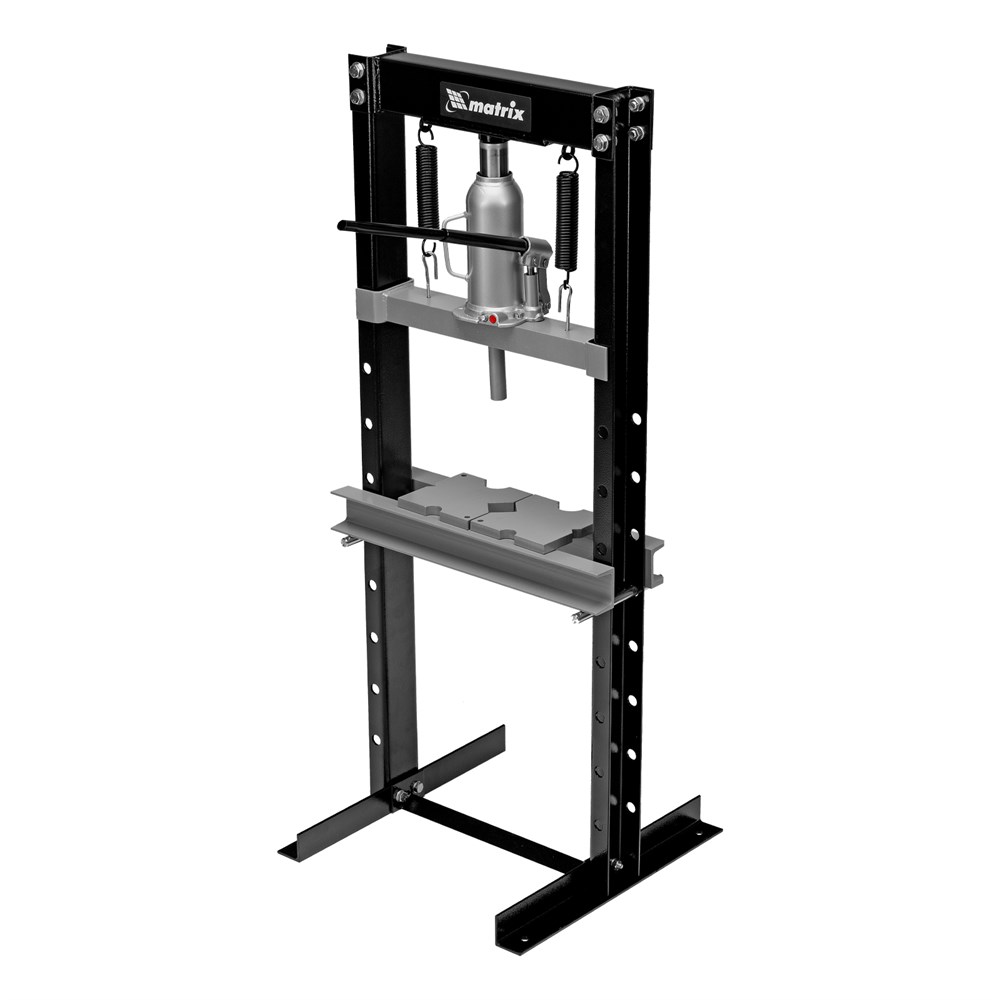 Гидравлический пресс Matrix 523105, обладающий мощностью 12 тонн, идеально подходит для запрессовки и выпрессовки различных деталей, что делает его незаменимым инструментом для гаража и мастерских.