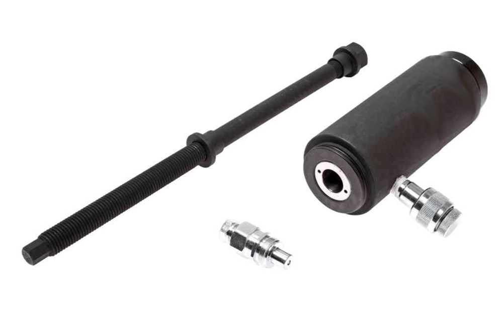 Гидравлический цилиндр используется в качестве привода, который может развивать усилие до 15 тонн. Используя цилиндр в комплекте со специальными приспособлениями и насадками можно значительно облегчить демонтаж сайлентблоков, подшипников или сальников.