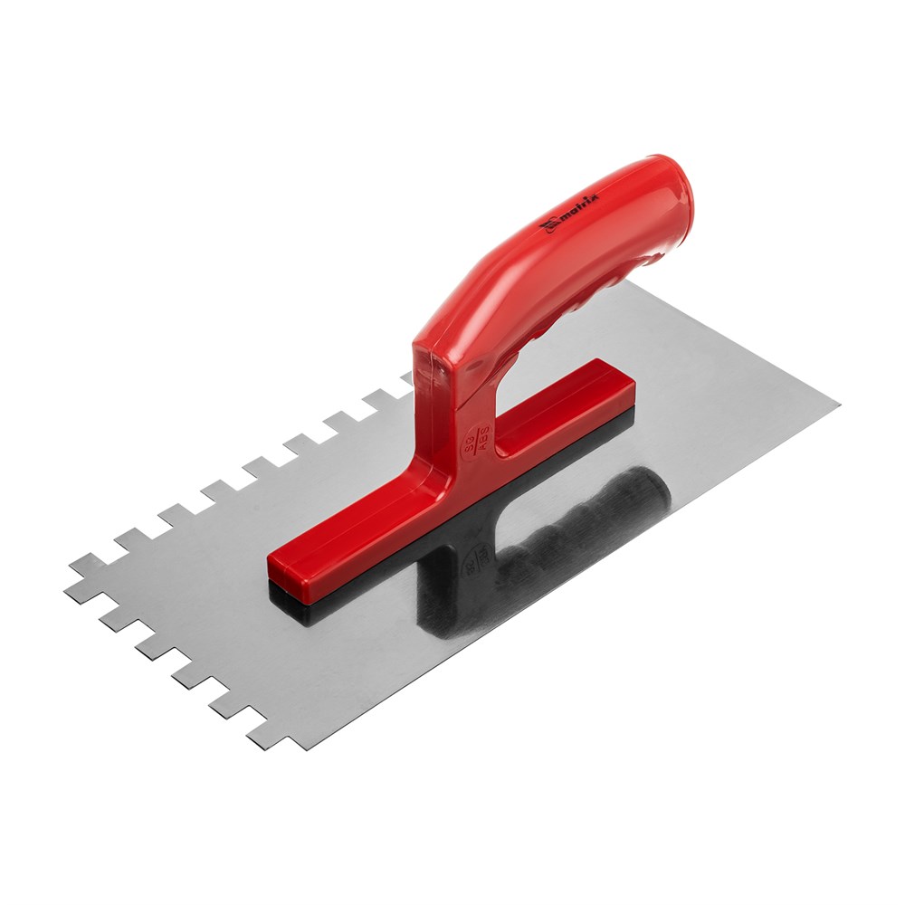 Гладилка стальная, 280 x 130 мм, зеркальная полировка, пластмастмассовая ручка, зуб 10 x 10 мм Matrix 86779