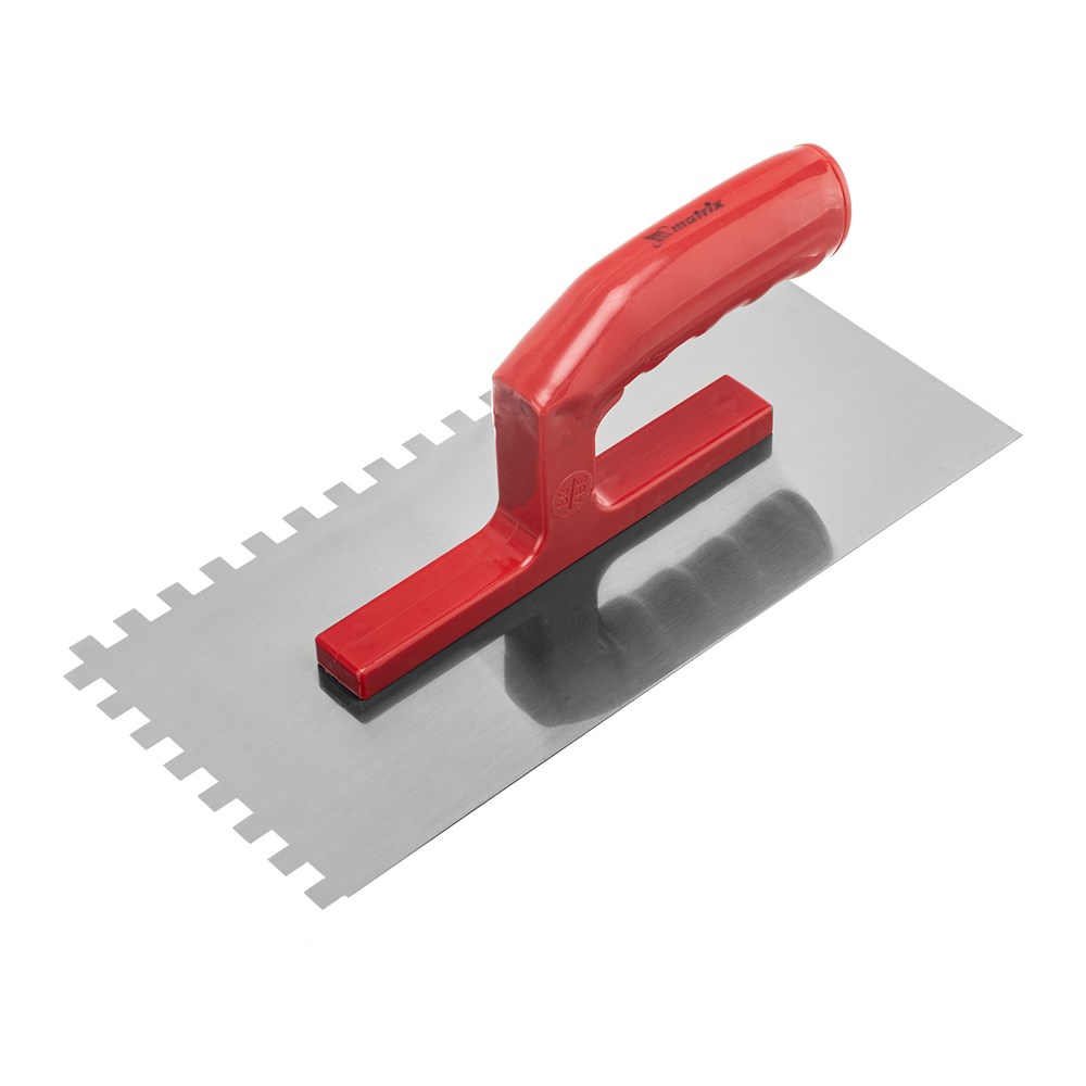 Гладилка стальная, 280 x 130 мм, зеркальная полировка, пластмастмассовая ручка, зуб 8 x 8 мм Matrix 86778