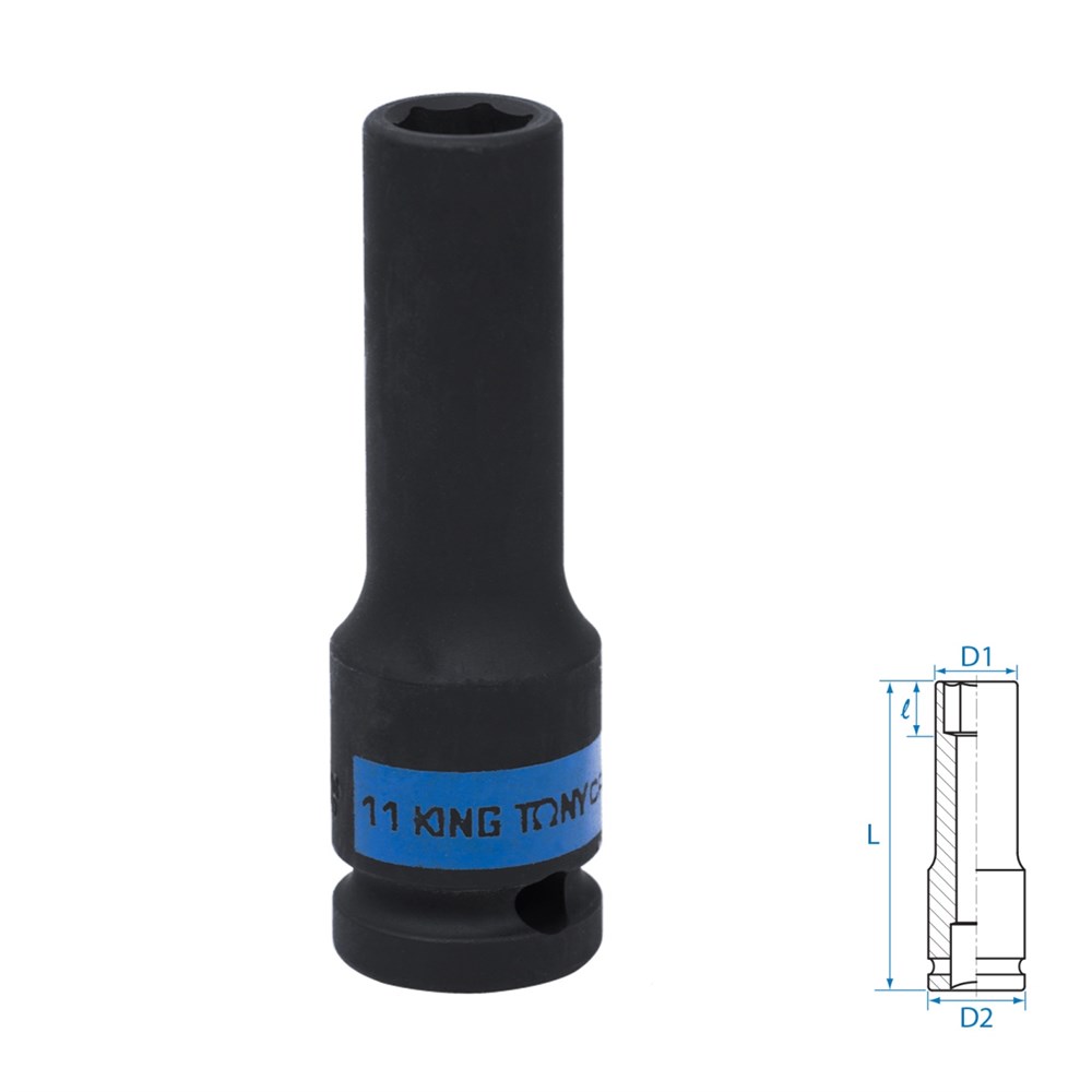 Головка торцевая ударная глубокая шестигранная 1/2", 11 мм KING TONY 443511M TONY