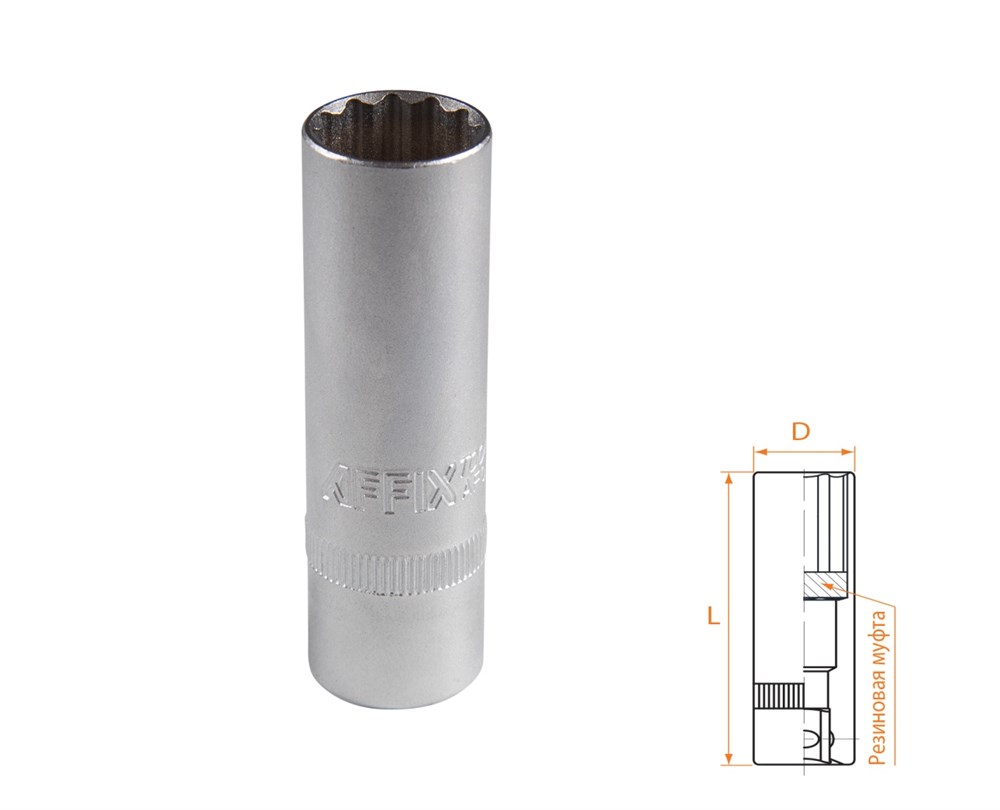 Головка свечная двенадцатигранная 1/2", 16 мм, резиновый фиксатор AFFIX AF00242016 AF00242016