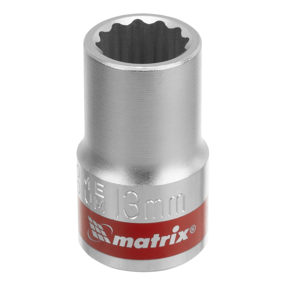 Головка торцевая, 13 мм, двенадцатигранная, CrV, под квадрат 1/2, хромированная Matrix