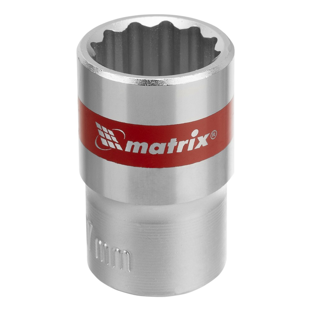 Головка торцевая, 17 мм, двенадцатигранная, CrV, под квадрат 1/2, хромированная Matrix 13690