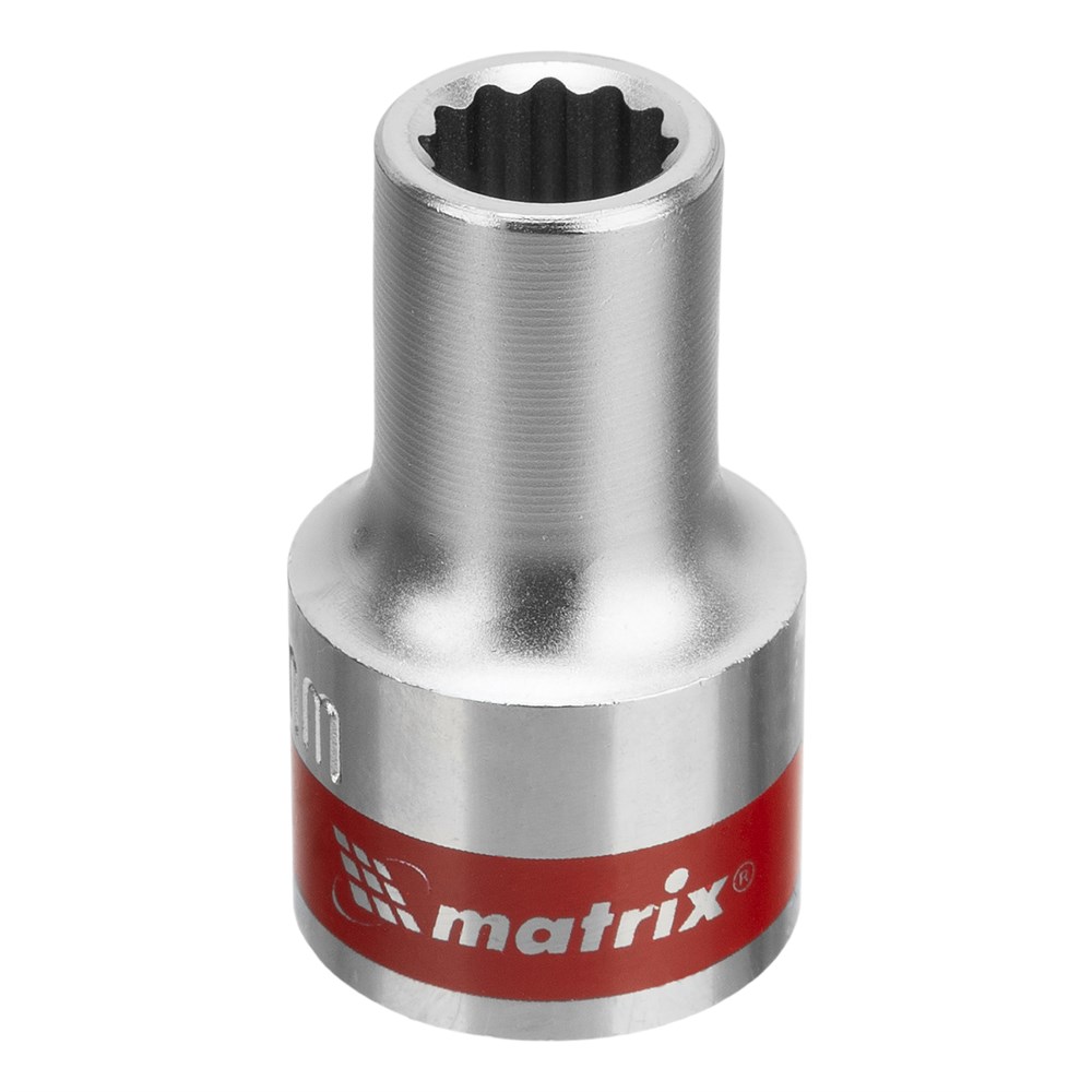 Головка торцевая, 9 мм, двенадцатигранная, CrV, под квадрат 1/2, хромированная Matrix 13678