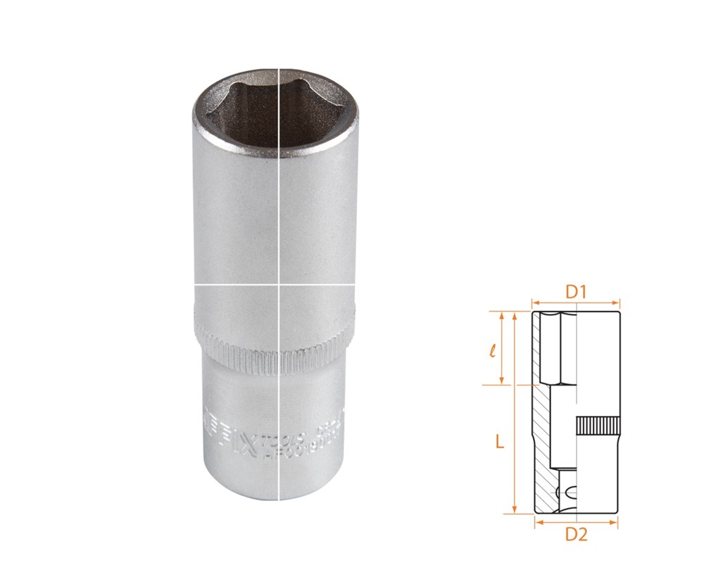 Размер 17 мм Посадочный квадрат 3/8" Рабочий профиль 6-гранный Рабочий диаметр (D1) 24,0 мм Диаметр в основании (D2) 22 мм Рабочая глубина (l) 28 мм Общая длина (L) 63 мм Материалы инструментальная сталь Cr-V, хром Размеры 63×24×24 мм Вес 0,110 кг