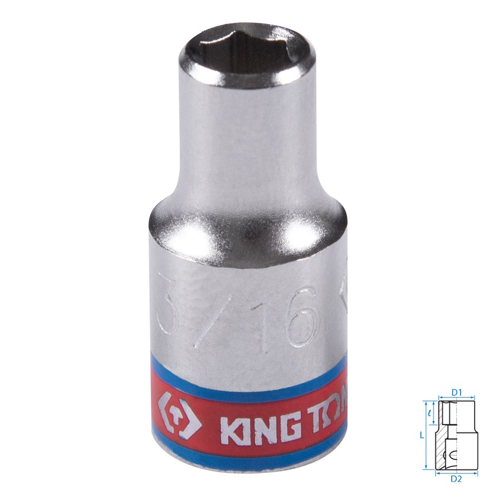 Головка торцевая стандартная шестигранная 1/4", 3/16", дюймовая KING TONY 233506S TONY