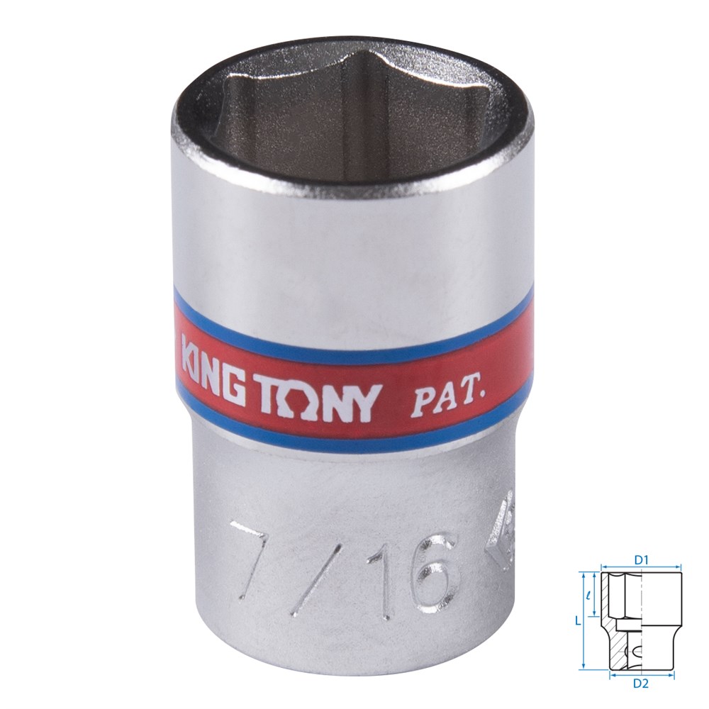 Головка торцевая стандартная шестигранная 1/4", 7/16", дюймовая KING TONY 233514S TONY