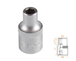 Описание и характеристики Размер 6 мм Посадочный квадрат 3/8" Рабочий профиль 6-гранный Рабочий диаметр (D1) 10,1 мм Диаметр в основании (D2) 16,9 мм Рабочая глубина (l) 11 мм Общая длина (L) 28 мм Материалы инструментальная сталь Cr-V, хром Размеры 28×16,9×16,9 мм Вес 0,022 кг