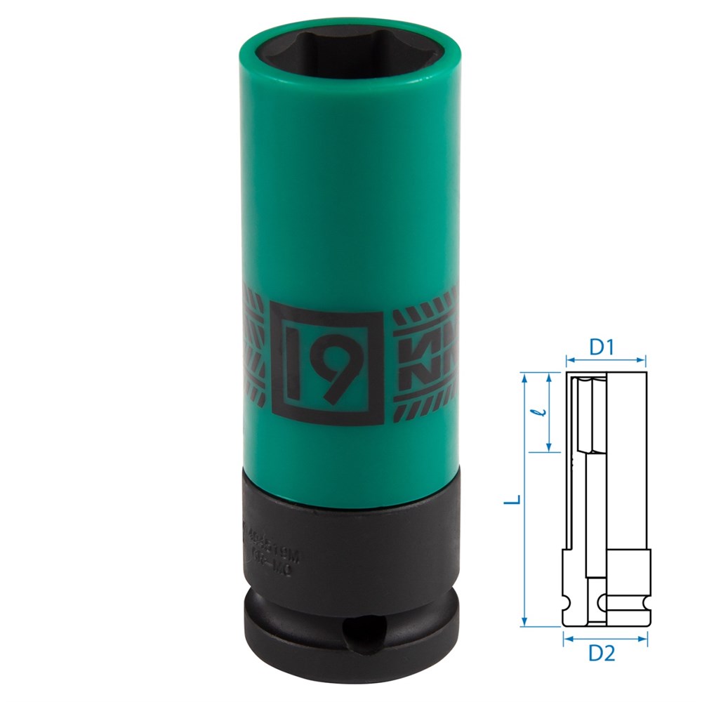Торцевые головки изготовлены специально для работы на шиномонтажном участке. Тонкие стенки позволяют работать с крепежом легкосплавных и кованых колёсных дисков, где использование стандартных головок проблематично или недопустимо. Съёмная пластиковая втулка поможет защитить колёсный диск от возможных повреждений.