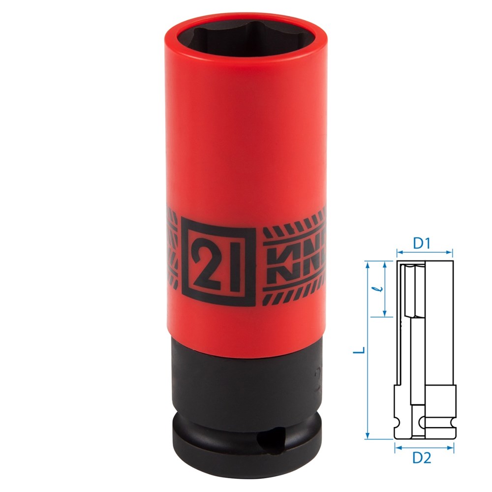 Торцевые головки изготовлены специально для работы на шиномонтажном участке. Тонкие стенки позволяют работать с крепежом легкосплавных и кованых колёсных дисков, где использование стандартных головок проблематично или недопустимо. Съёмная пластиковая втулка поможет защитить колёсный диск от возможных повреждений.