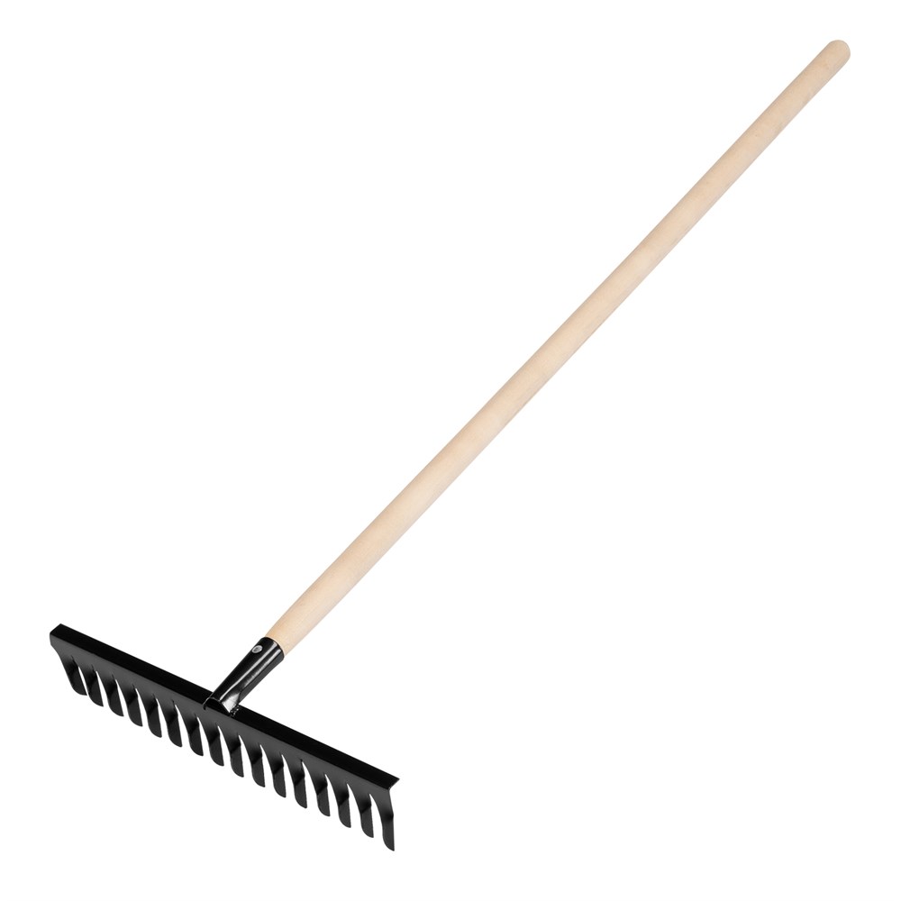 Грабли поставляются в сборе с деревянным черенком, готовые к эксплуатации.