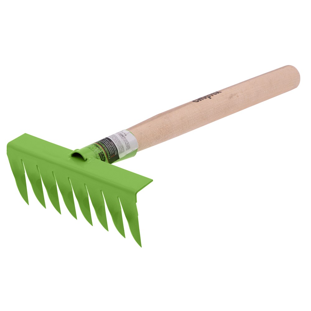 Грабли выполнены из конструкционной углеродистой стали и имеют деревянную рукоятку, что обеспечивает надежность и удобство в использовании. Инструмент поставляется в сборе, что позволяет сразу приступить к работе.