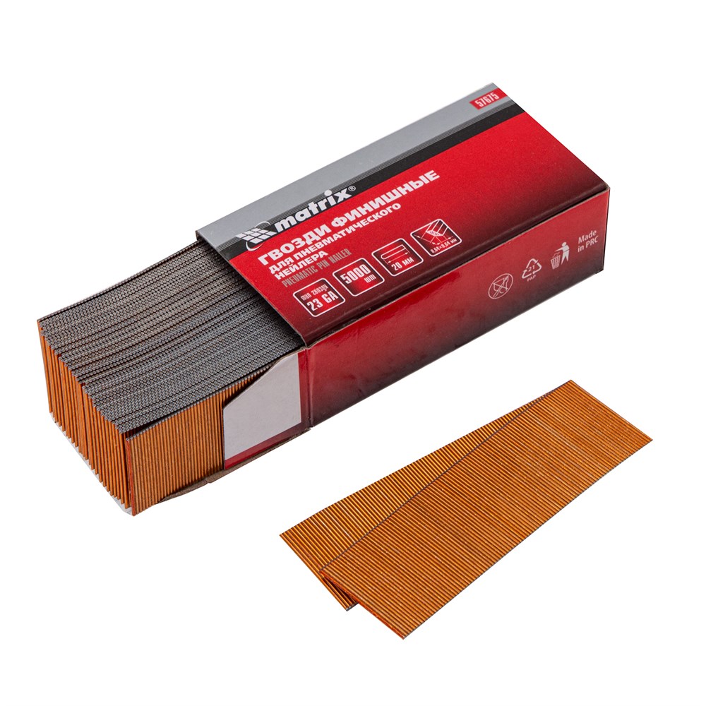 Гвозди финишные, (шпильки) 23GA для пневматического нейлера финишного D 0.64 мм, длина 20 мм, 5000 шт Matrix 57675