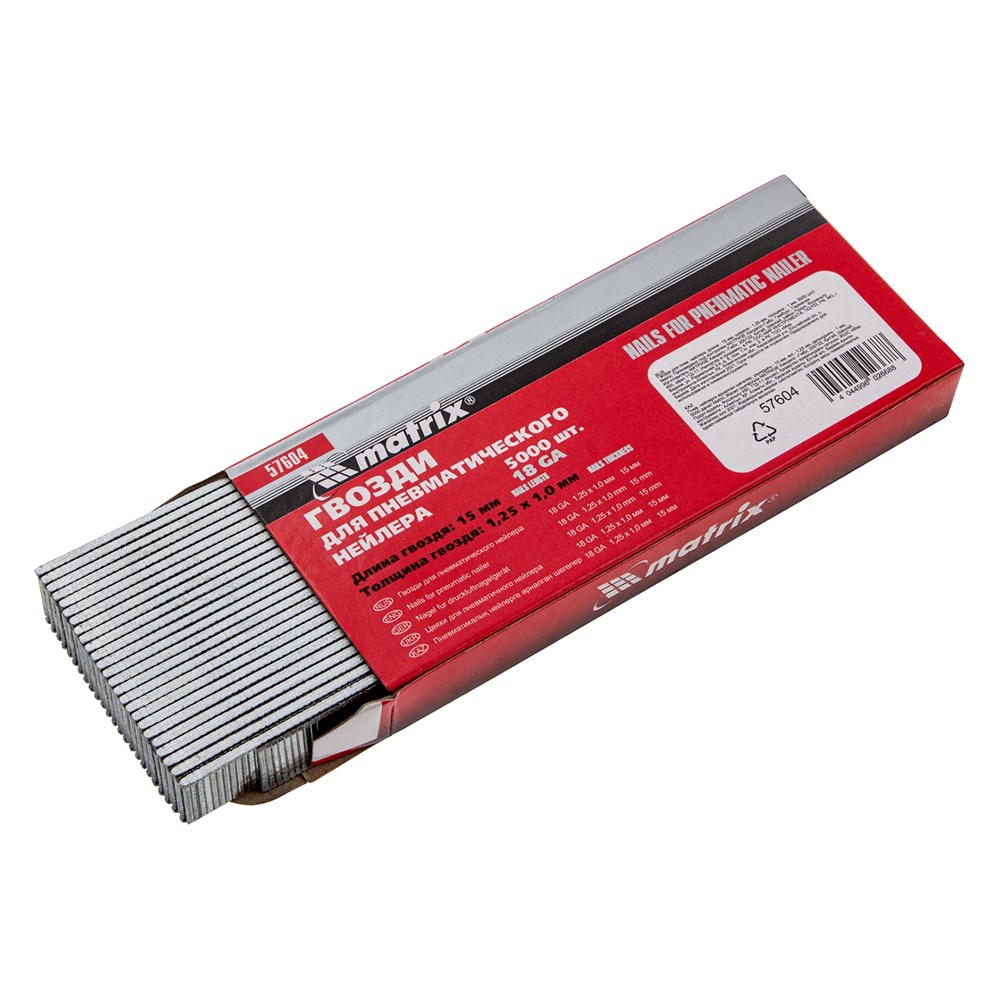 Гвозди для пневматического нейлера, длина 15 мм, ширина 1.25 мм, толщина 1 мм, 5000 шт Matrix 57604