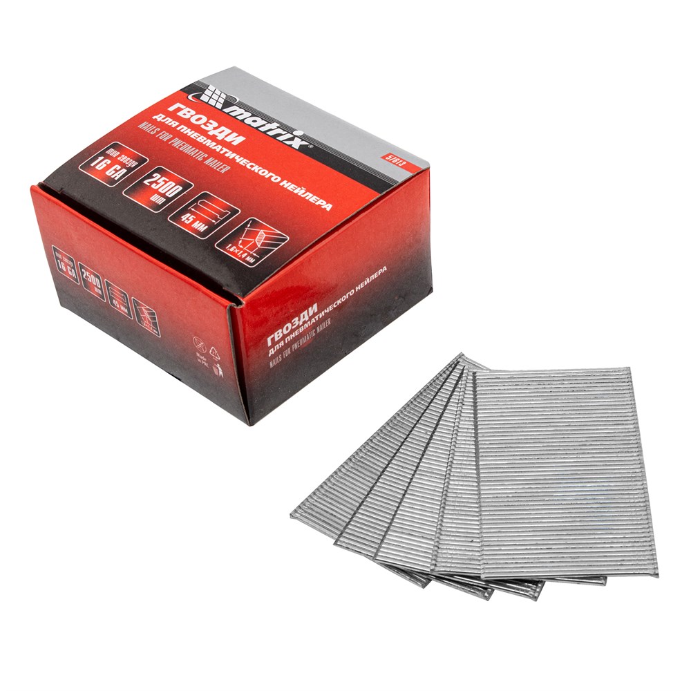 Гвозди для пневматического нейлера 16GA, сечение 1.6 х 1.4, длина 45 мм, 2500 шт Matrix 57613