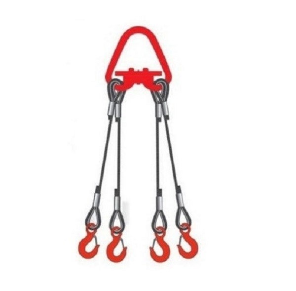 Канатный строп с 4 крюками Грузовая механика 4СК 2,0т 2м предназначен для подъема, перемещения и удержания различных грузов с фиксацией за 4 точки крепления.