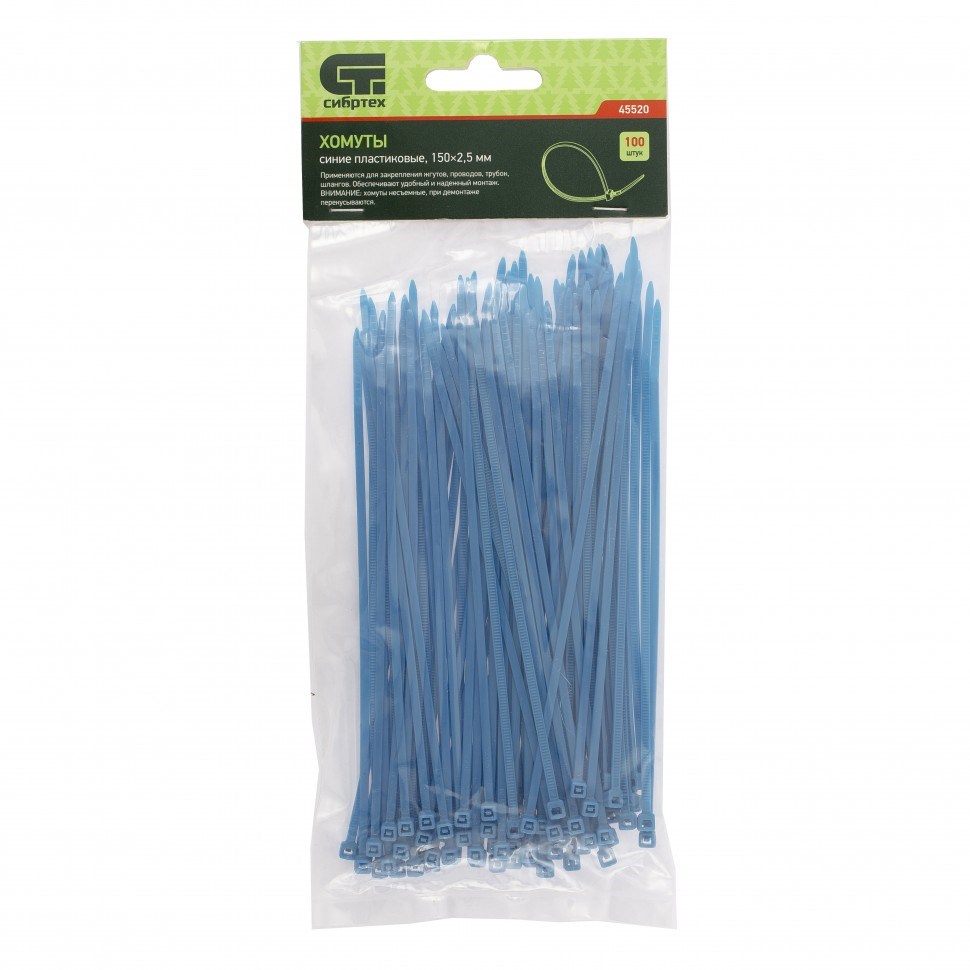 Хомуты, 150 x 2.5 мм, пластиковые, синие, 100 шт Сибртех 45520