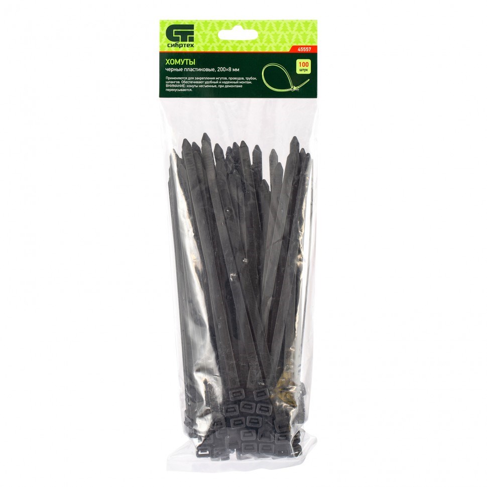 Хомуты, 200 х 8 мм, пластиковые, черные, 100 шт Сибртех 45557