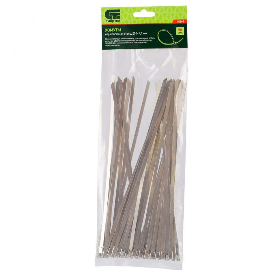 Хомуты Сибртех 45595 - 250 х 4.6 мм, нержавеющая сталь, 50 шт