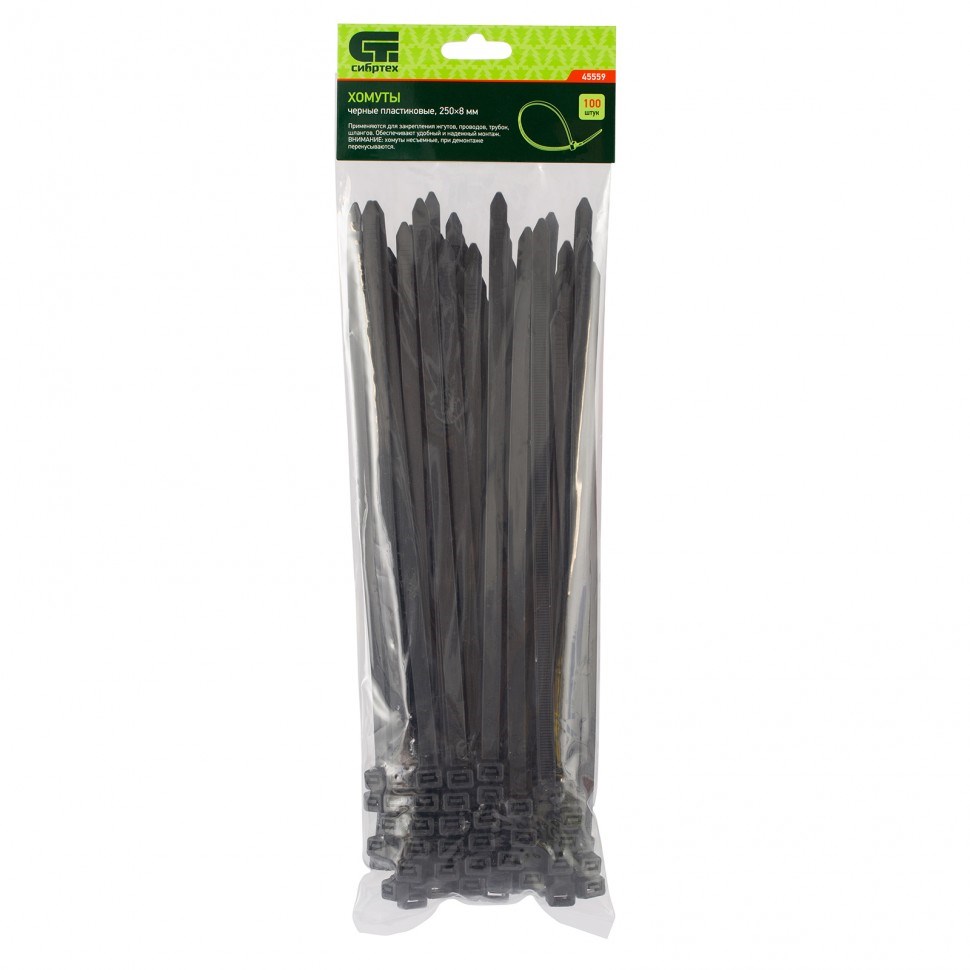 Хомуты пластиковые черные, 250 х 8 мм, 100 шт Сибртех